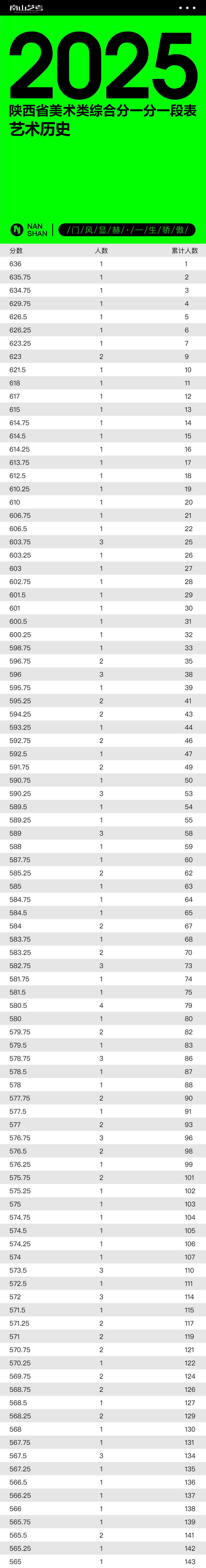 重磅通知丨2025年陕西省美术类综合分一分一段表